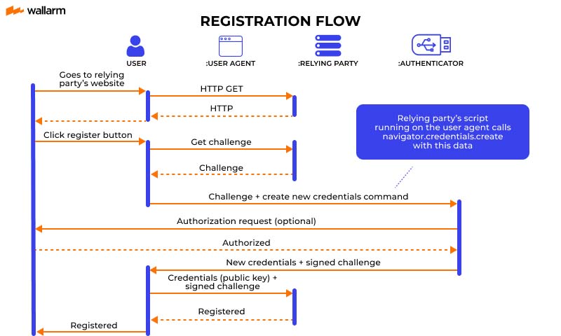 - Registration과 Authentication 두 단계로 구성된 전체 로그인 플로우 내에서 사용자의 민감한 정보는 교환되지 않는다.